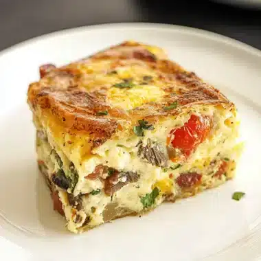 7. Bake: Pour the mixture into the prepared baking dish and spread it evenly. Bake in the preheated oven for about 45 minutes or until golden brown and set in the center.